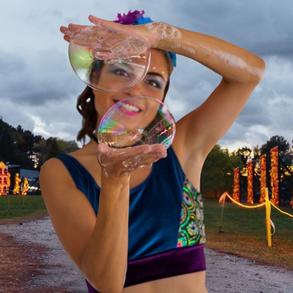 Zoe Stardust turns events into unforgettable spectacles. From giant bubbles to dazzling fire and LED displays, her shows sparkle with surprise, delight, and pure magic for guests of all ages.