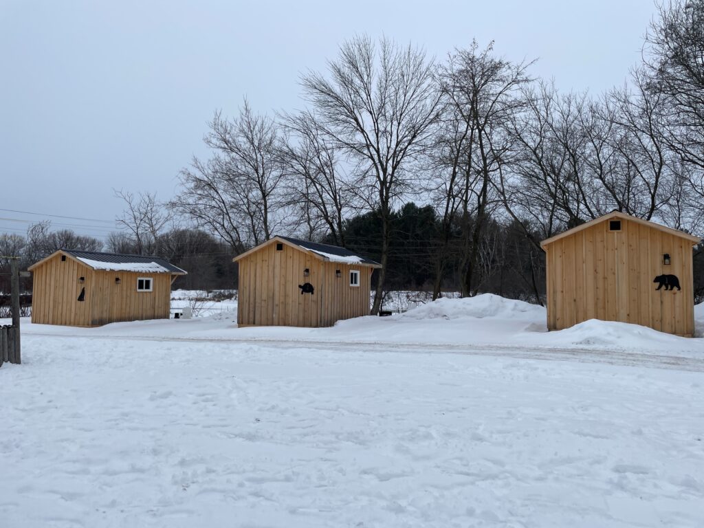 Every cabin includes a private outdoor firepit, Muskoka chairs, and a sturdy picnic table—perfect for relaxed daytime meals and quiet evenings beneath the stars. Guests can pre-purchase firewood for convenient delivery to their site. Modern washrooms and full shower facilities are just a short walk away, and all overnight stays include on-site parking and secure, gate access.